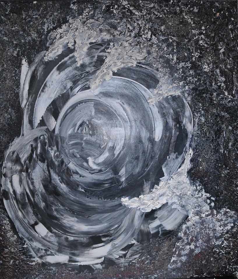 Vortex 80 X 100 cm Canvas, acrylics, glue, stone, lime Year 2016