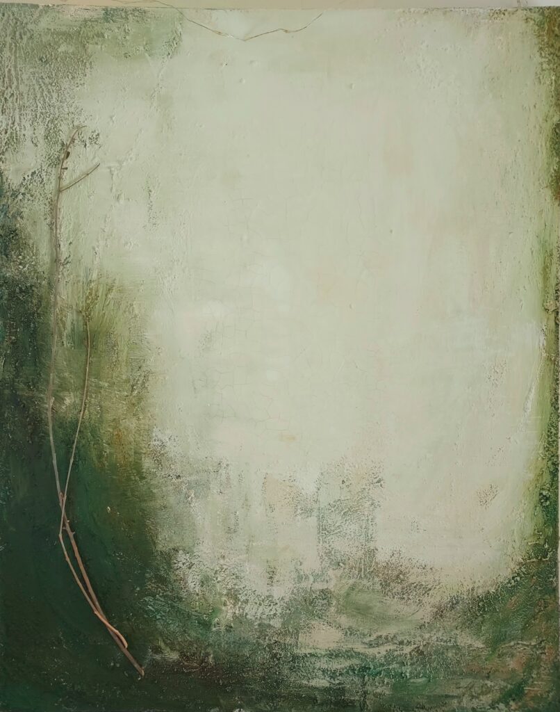 Olive Tree 80 X 100 cm Canvas, acrylics, glue, marble dust, olive leaves Year 2016